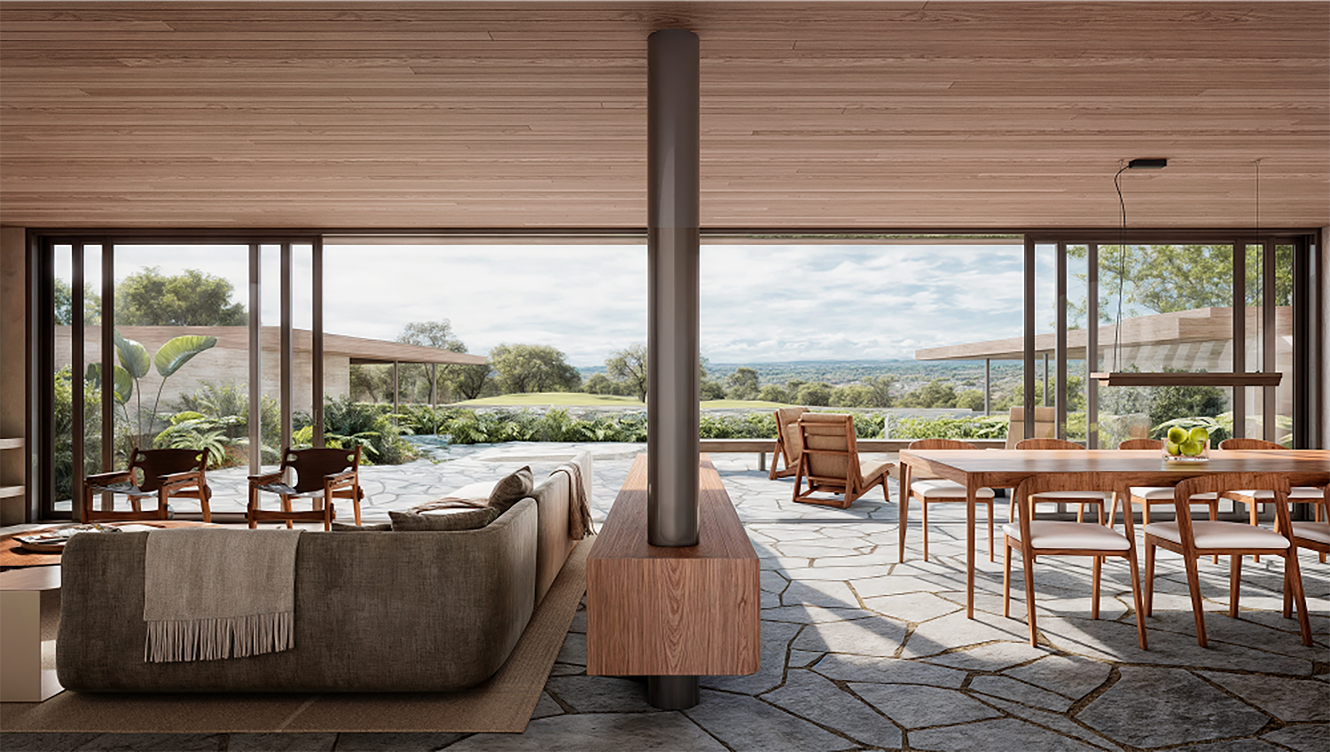 Grande parte dessa consistência está no que não se vê, em camadas que operam de forma integrada desde o início do projeto, como iluminação, conforto térmico e acústico, desempenho energético e estratégias passivas de ventilação e sombreamento. Quando a paisagem entra como parte ativa desse raciocínio, o projeto ganha ainda mais precisão. Vento, orientação solar, vegetação e topografia deixam de ser condicionantes externas e passam a estruturar decisões de implantação e organização espacial, estabelecendo continuidades entre interior e exterior e qualificando o ambiente de forma mais consistente.